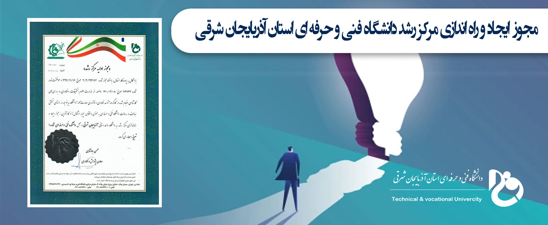 مجوز ایجاد و راه اندازی مرکز رشد و نوآوری دانشگاه فنی و حرفه ای استان آذربایجان شرقی