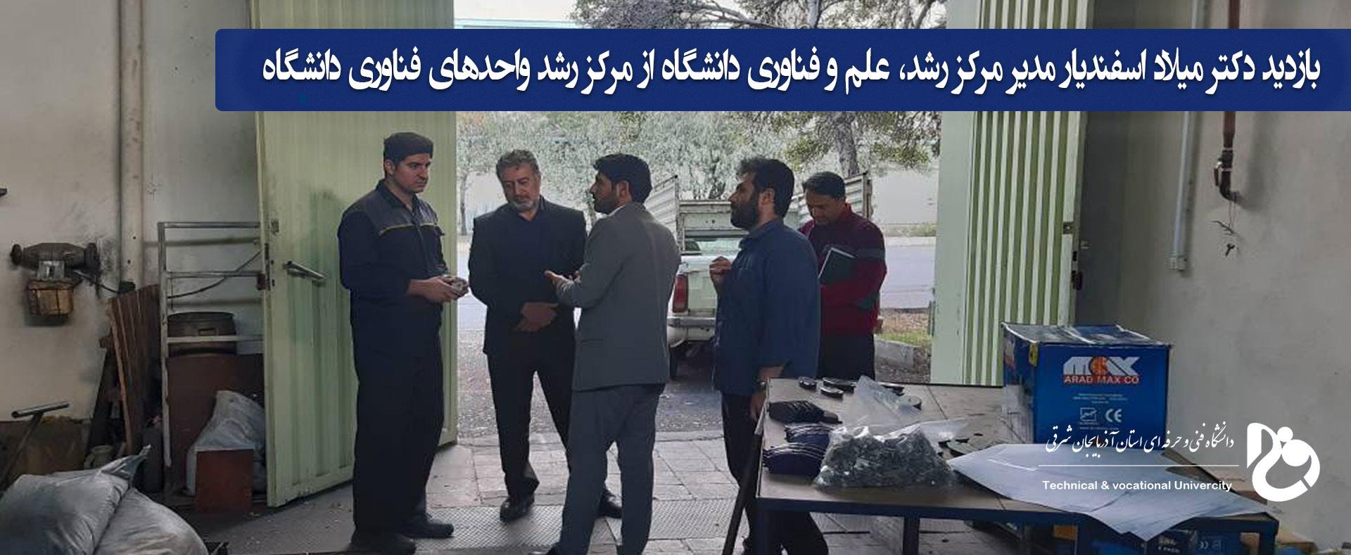 بازدید دکتر میلاد اسفندیار مدیر مرکز رشد، علم و فناوری دانشگاه از مرکز رشد واحدهای فناوری دانشگاه فنی و حرفه ای استان آذربایجان شرقی
